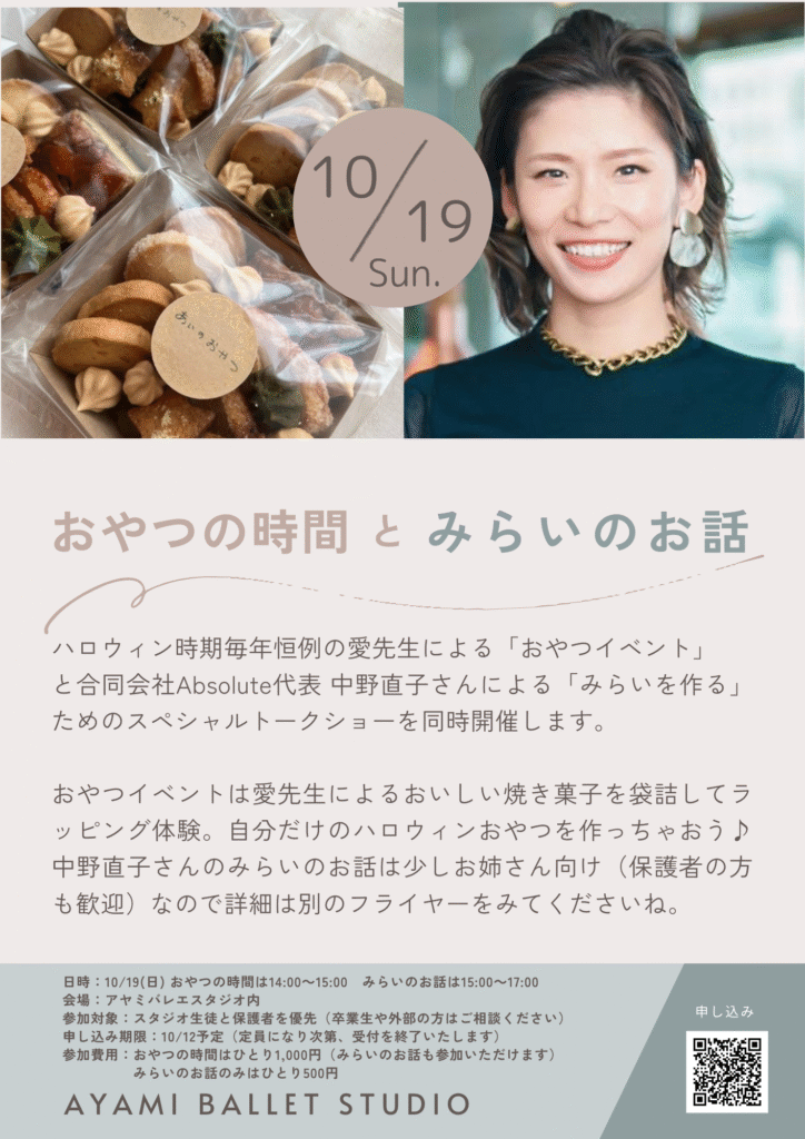 【―?10/19(日) 開催!「おやつの時間とみらいのお話」?―】 まだまだ暑い日が続いてますが、ハロウィンの季節が近づいてきましたね? 今年も恒例のあい先生による「おやつ?イベント」に加えて、なんと――超スペシャルゲストをお迎えしてのトークショーを同時... -
